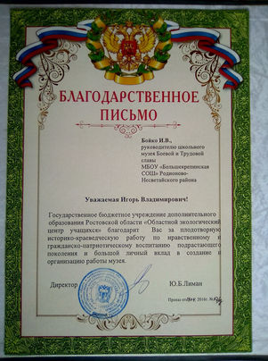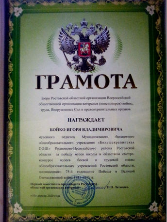 И тогда, на очередном заседании кружка «Патриот» было решено организовать музей «Боевой и Трудовой Славы», т.к. собранный материал нёс не только историческую ценность, но и являлся мощным катализатором патриотического воспитания молодёжи.