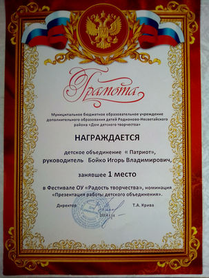 Деятельность музея «Боевой и Трудовой Славы» и кружка «Патриот» заключается в проведении всевозможных патриотических акций, экскурсий, мероприятий, связанных с народными праздниками, участие в конкурсах исследовательских работ и конференциях, оформление экспозиций музея.